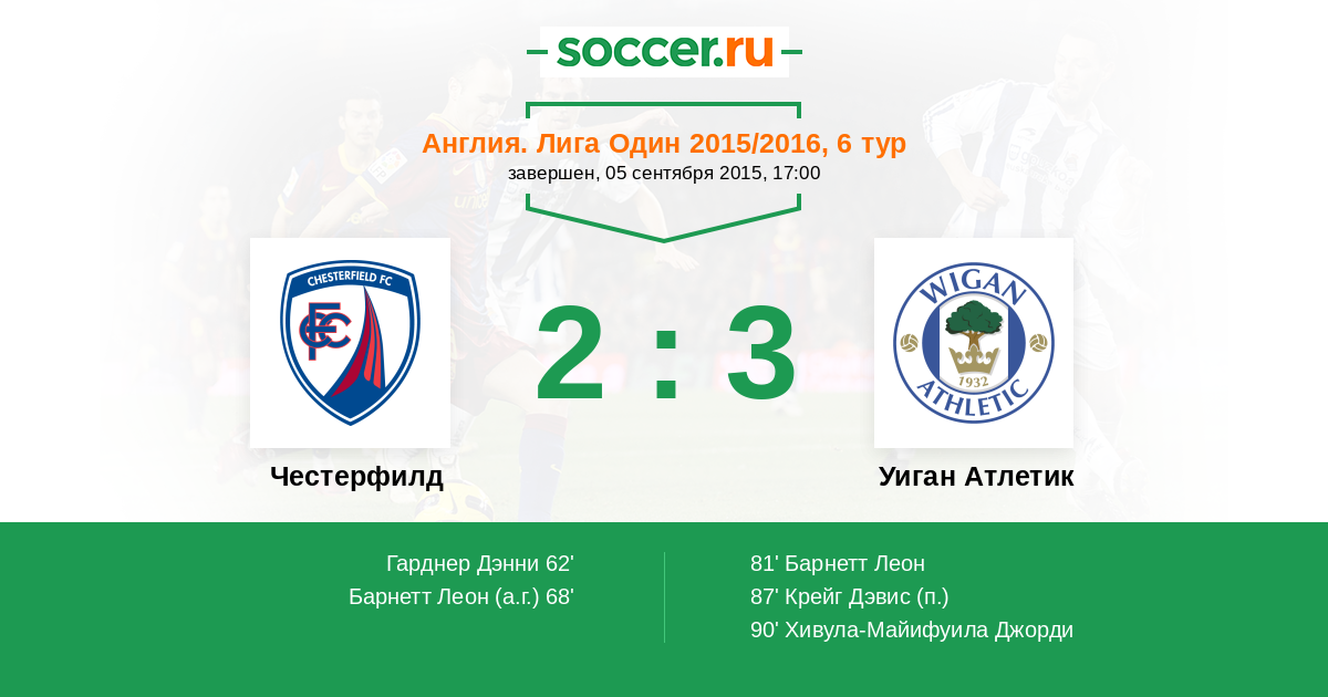 Протокол матча Честерфилд против Уиган Атлетик