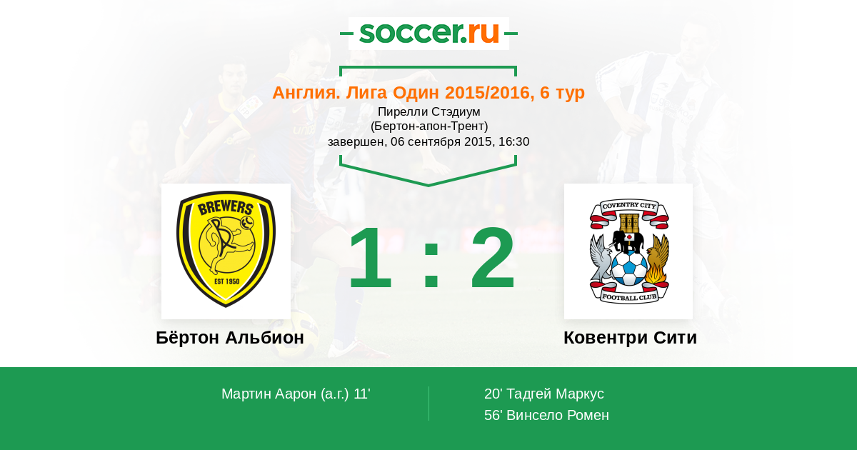 Протокол матча Бёртон Альбион против Ковентри Сити