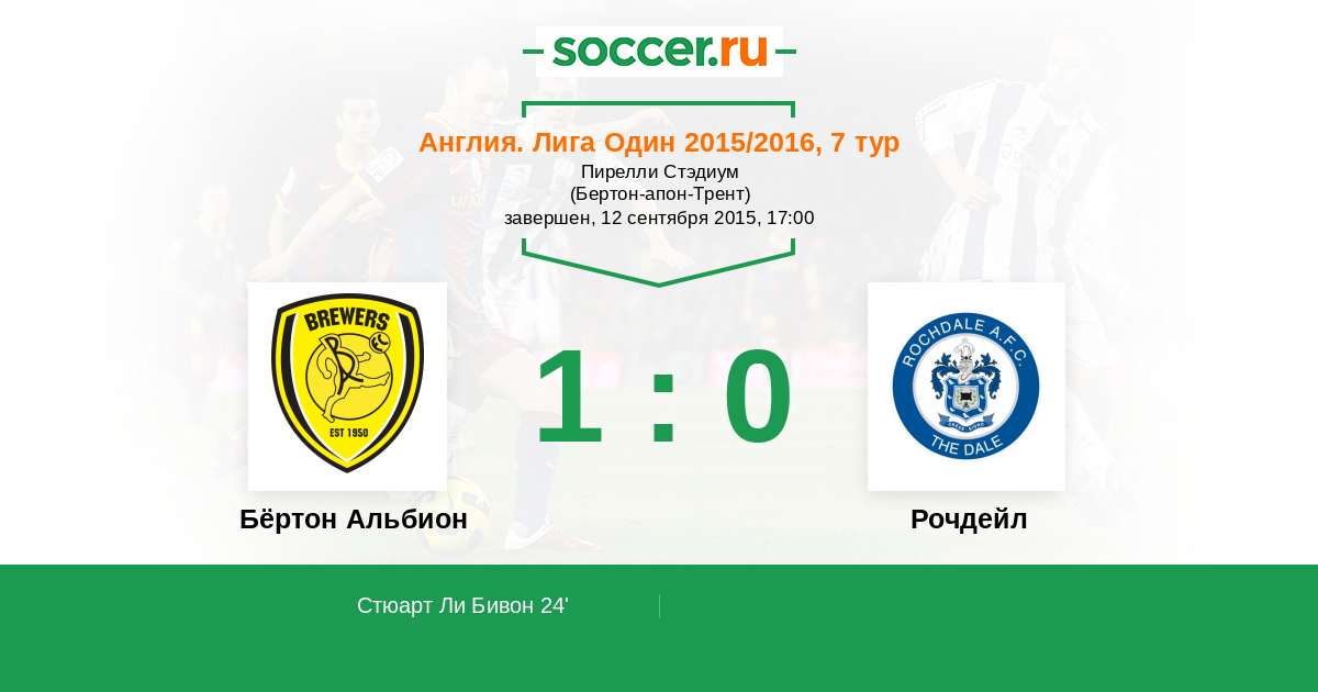 Гол24' (1:0) Стюарт Ли Бивон (9) (Акинс Лукас (10))