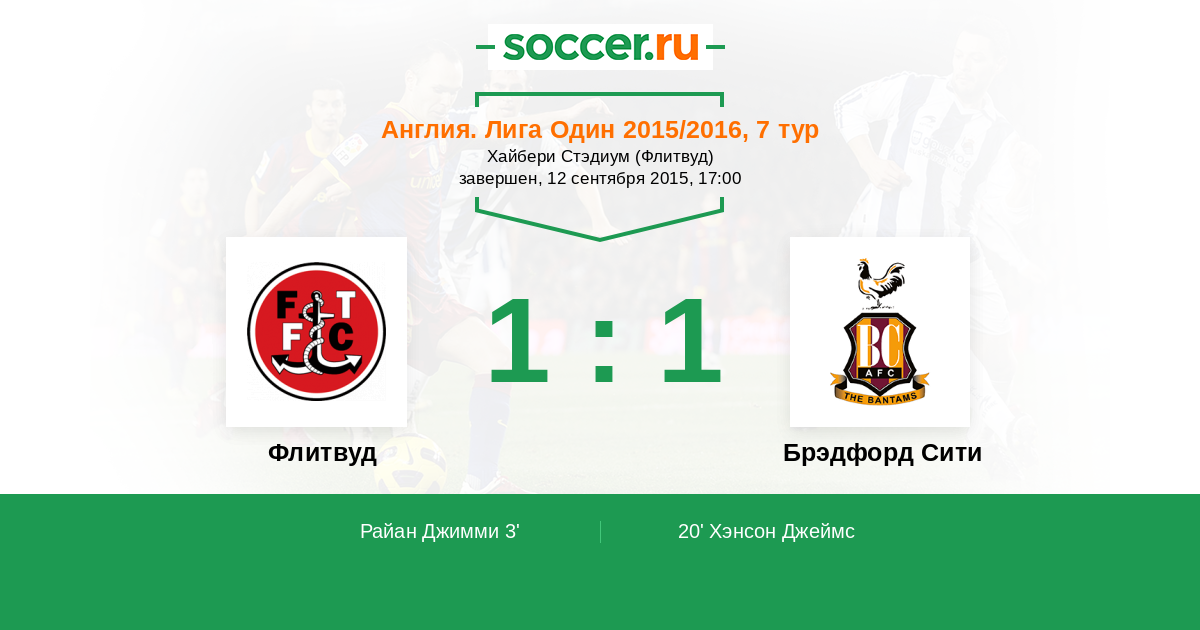 Протокол матча Флитвуд против Брэдфорд Сити