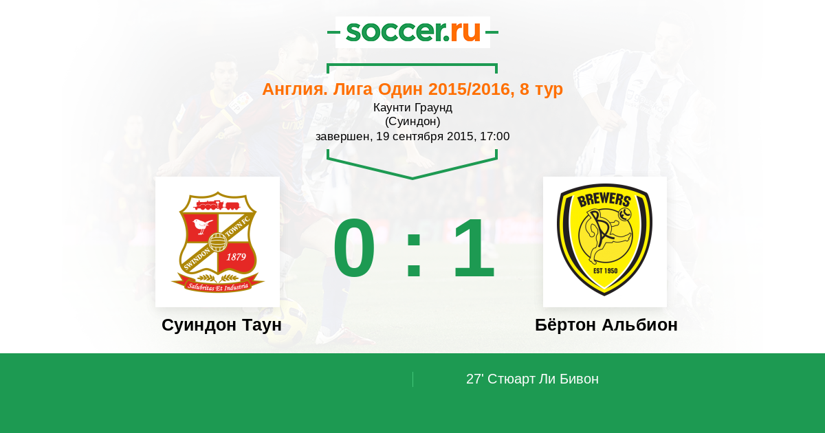 Протокол матча Суиндон Таун против Бёртон Альбион