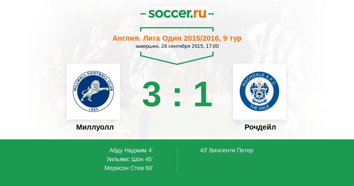 Протокол матча Миллуолл против Рочдейл