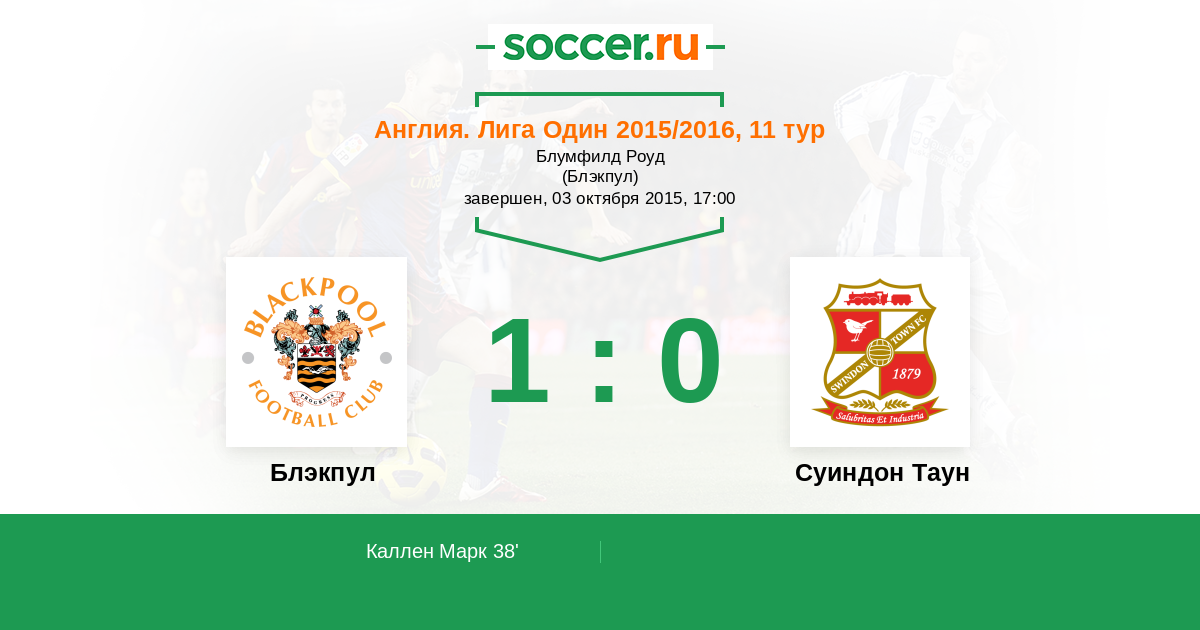 Протокол матча Блэкпул против Суиндон Таун