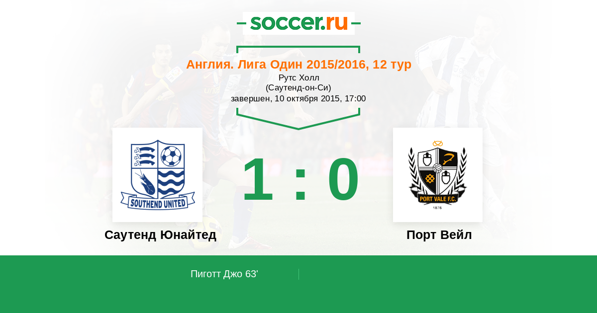 Протокол матча Саутенд Юнайтед против Порт Вейл