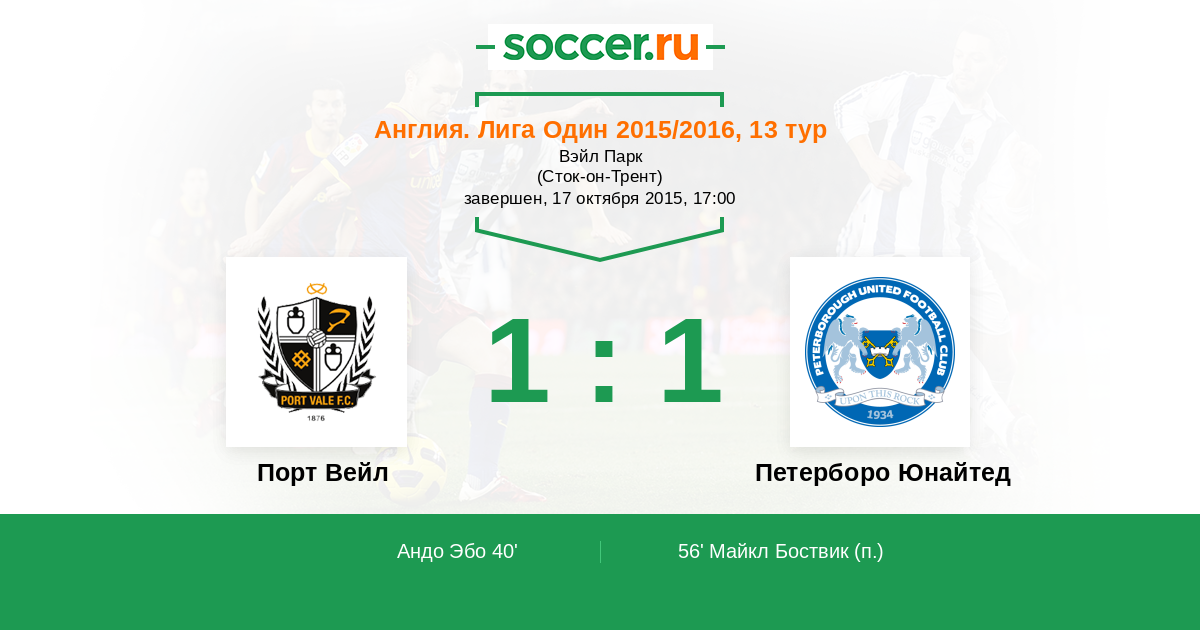 Протокол матча Порт Вейл против Петерборо Юнайтед