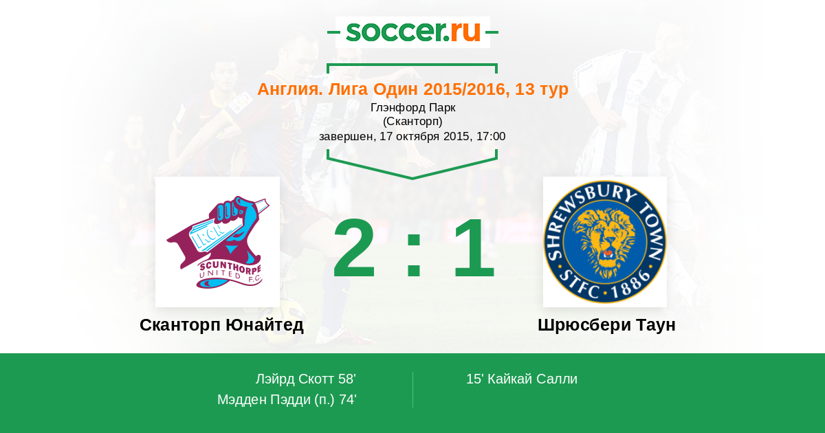 Протокол матча Сканторп Юнайтед против Шрюсбери Таун