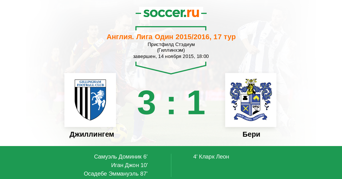 Протокол матча Джиллингем против Бери