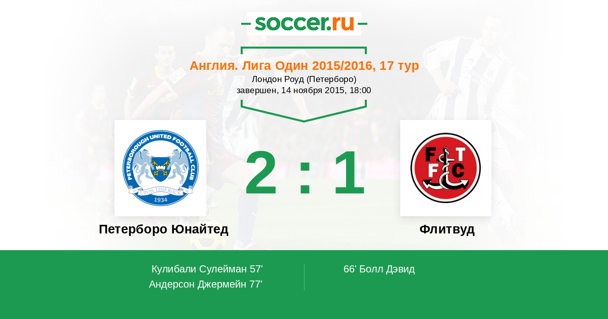 Протокол матча Петерборо Юнайтед против Флитвуд