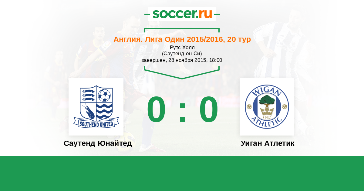 Протокол матча Саутенд Юнайтед против Уиган Атлетик