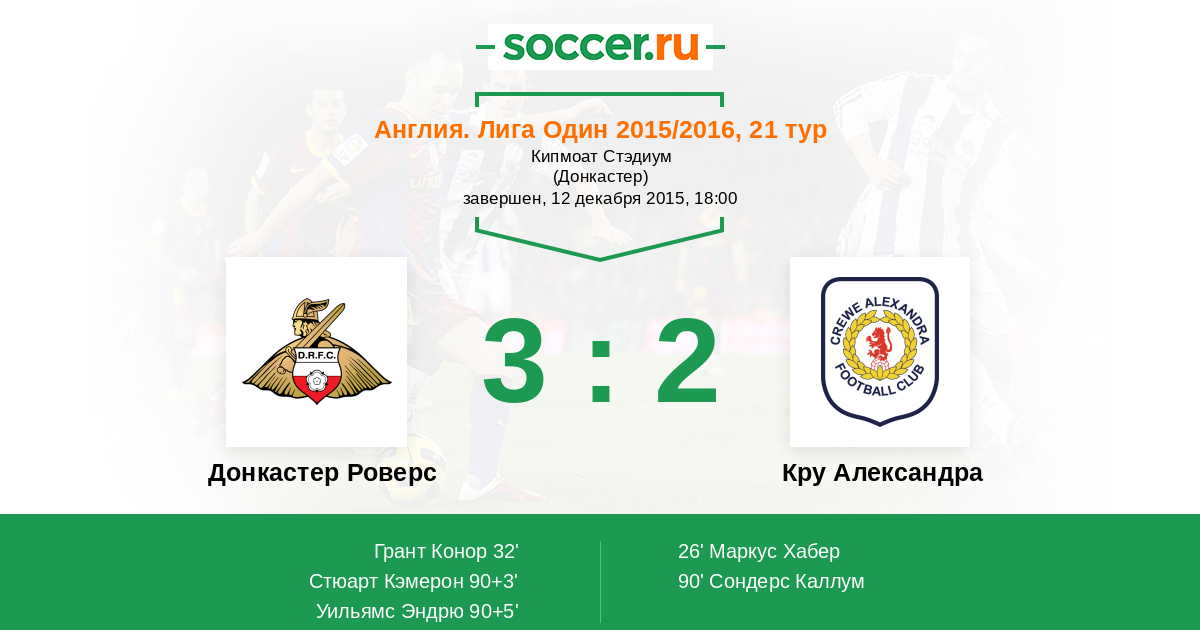 Протокол матча Донкастер Роверс против Кру Александра