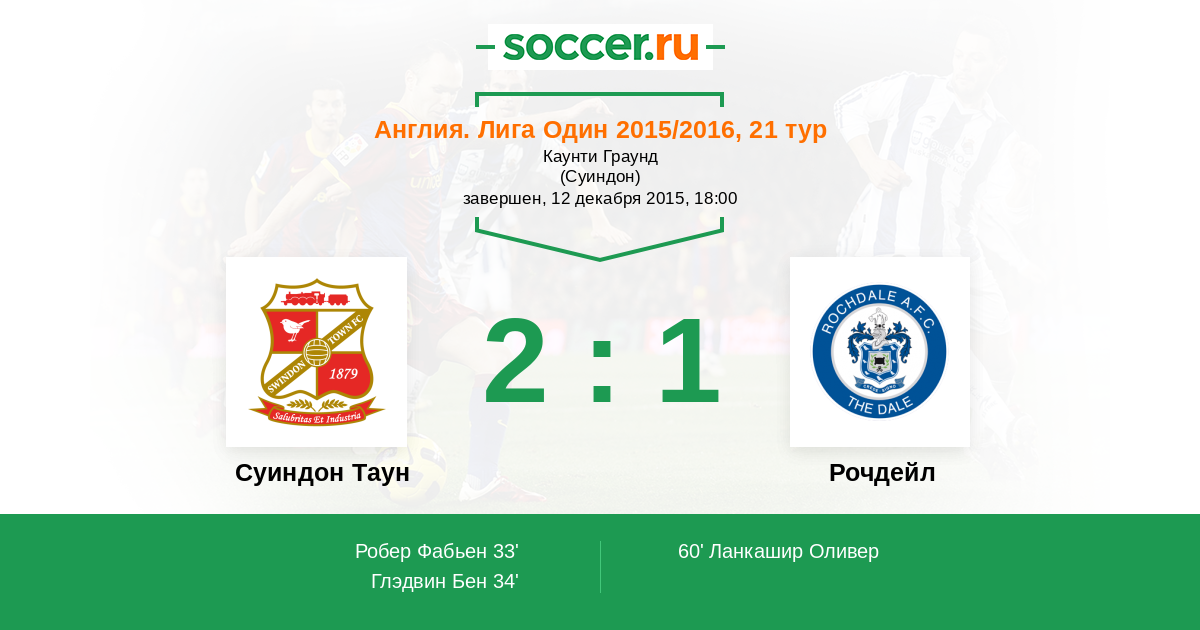 Протокол матча Суиндон Таун против Рочдейл