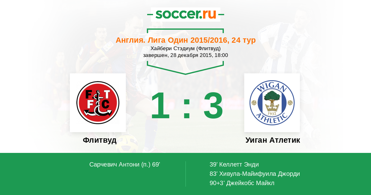 Протокол матча Флитвуд против Уиган Атлетик