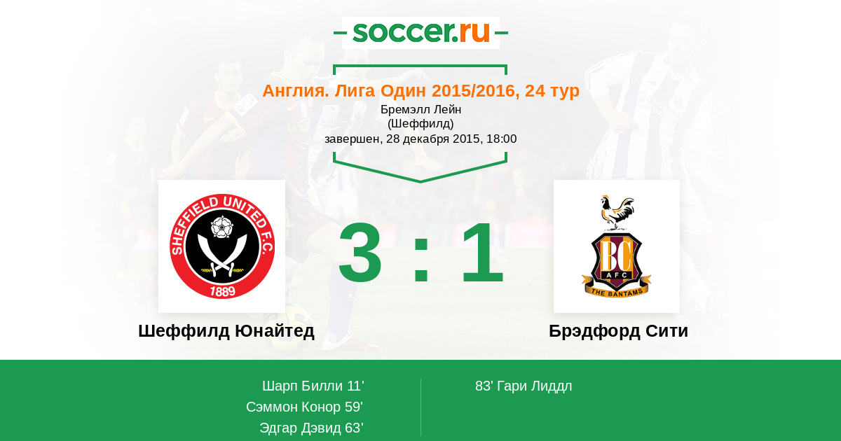 Протокол матча Шеффилд Юнайтед против Брэдфорд Сити