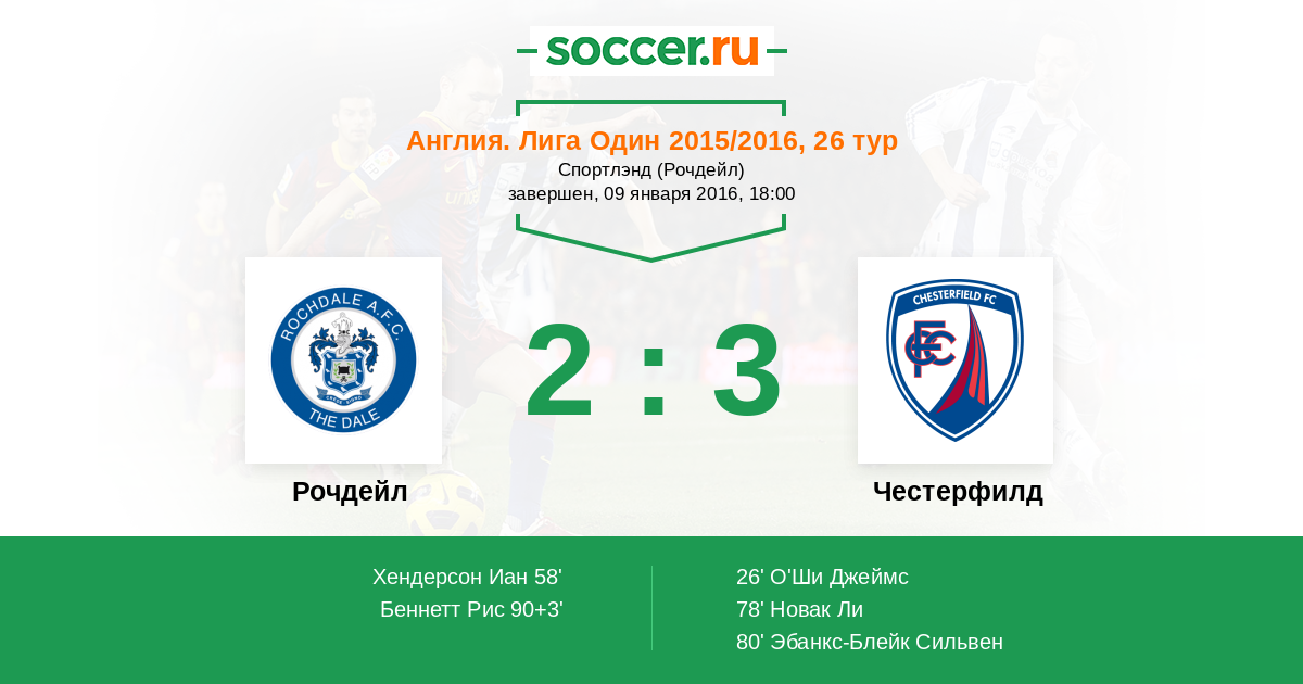 Протокол матча Рочдейл против Честерфилд