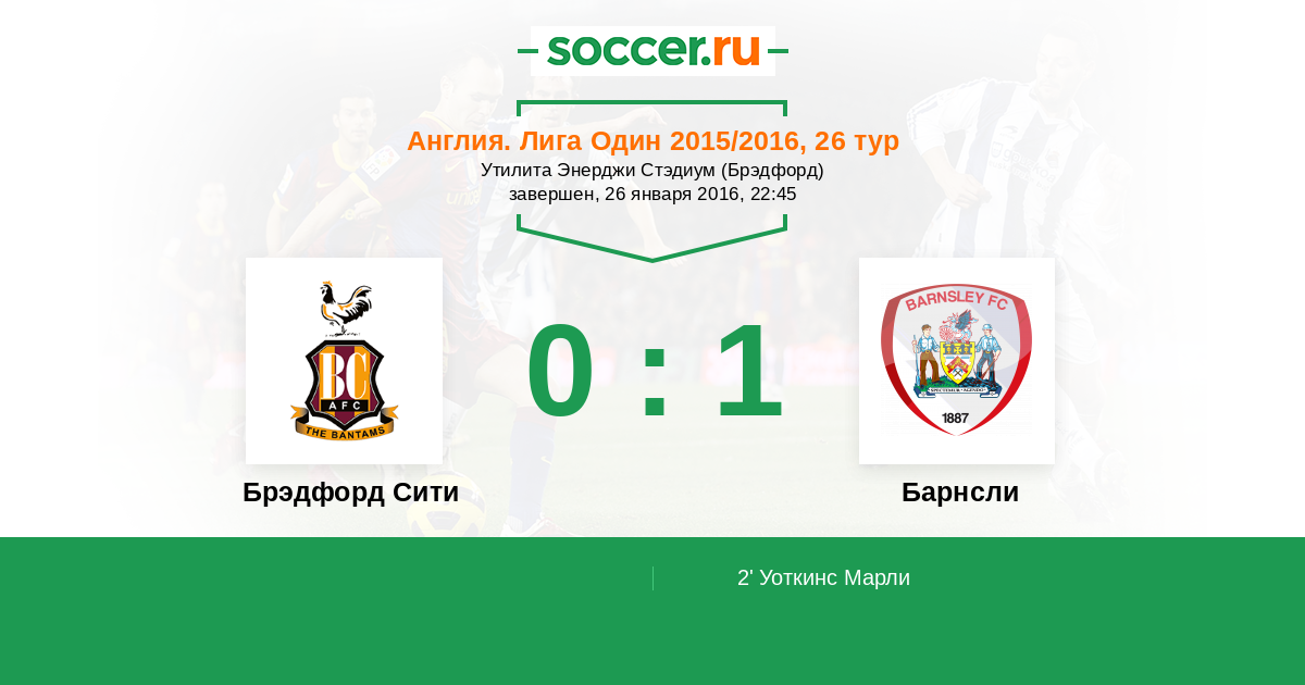 Протокол матча Брэдфорд Сити против Барнсли