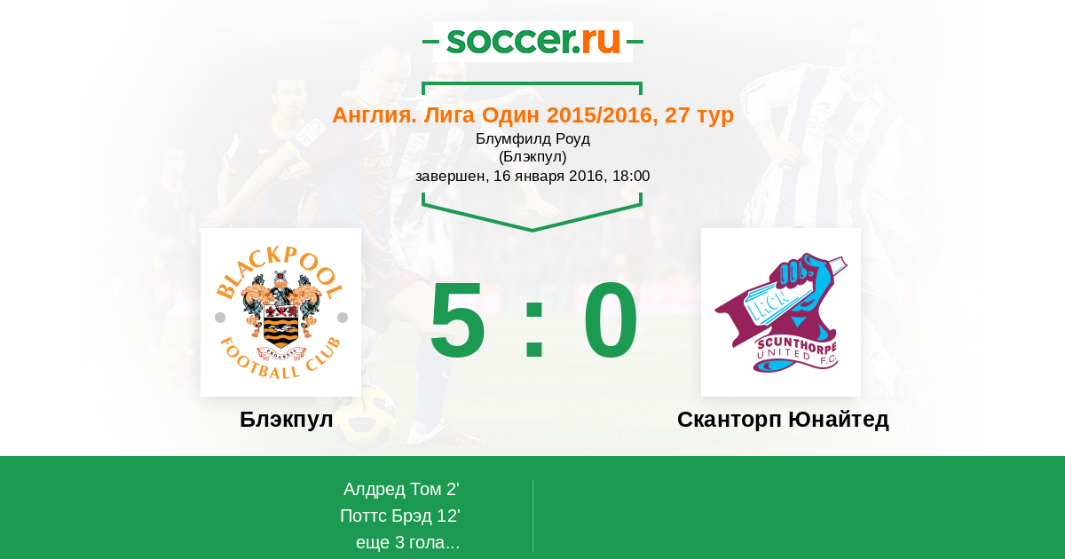 Протокол матча Блэкпул против Сканторп Юнайтед