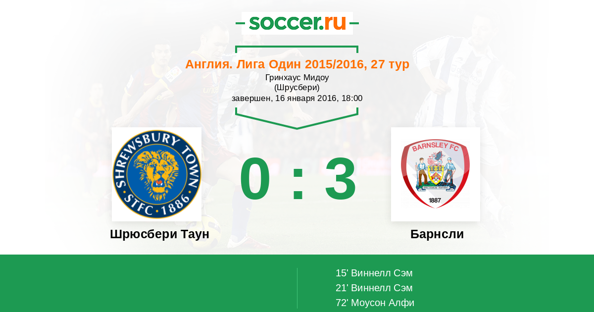 Протокол матча Шрюсбери Таун против Барнсли