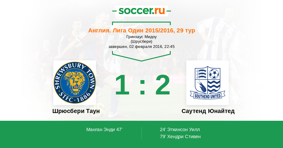 Протокол матча Шрюсбери Таун против Саутенд Юнайтед