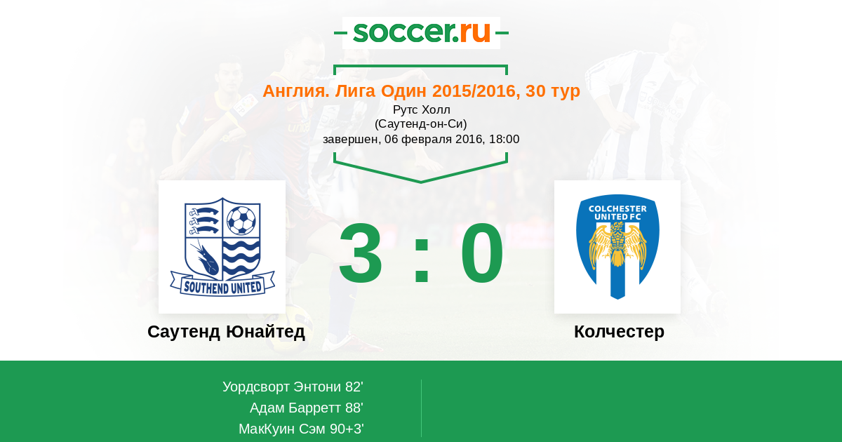 Протокол матча Саутенд Юнайтед против Колчестер