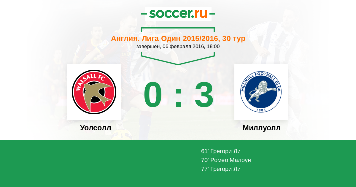 Протокол матча Уолсолл против Миллуолл