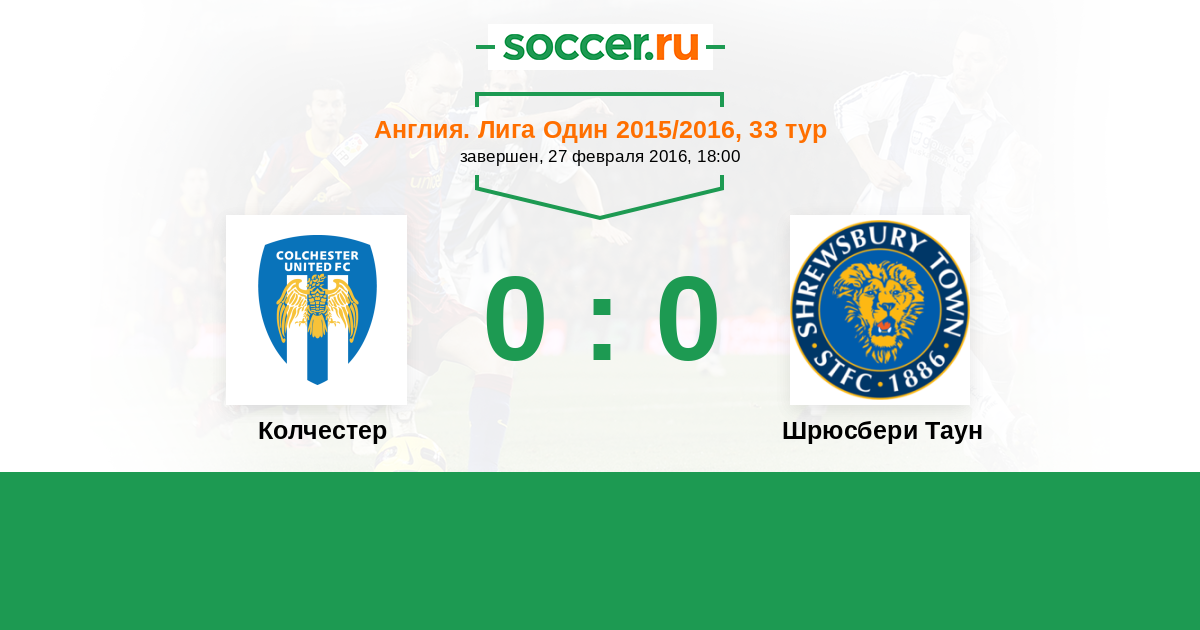 Протокол матча Колчестер против Шрюсбери Таун