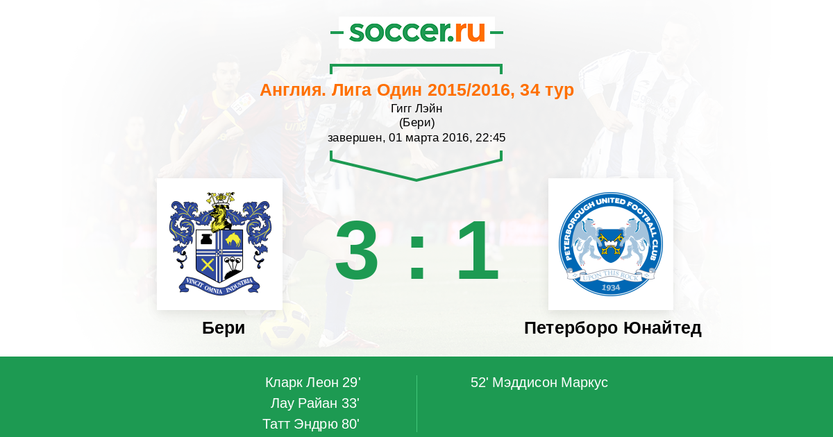 Протокол матча Бери против Петерборо Юнайтед