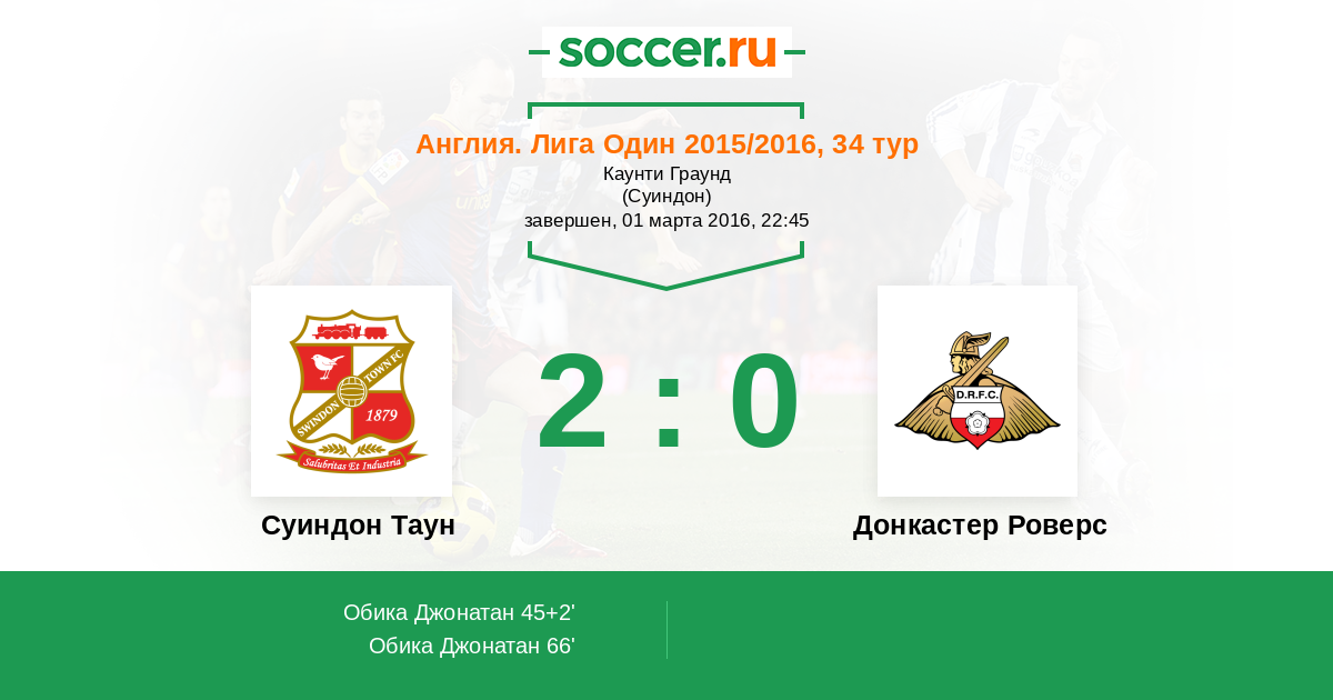 Протокол матча Суиндон Таун против Донкастер Роверс