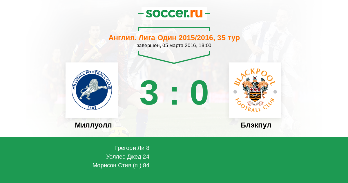 Протокол матча Миллуолл против Блэкпул