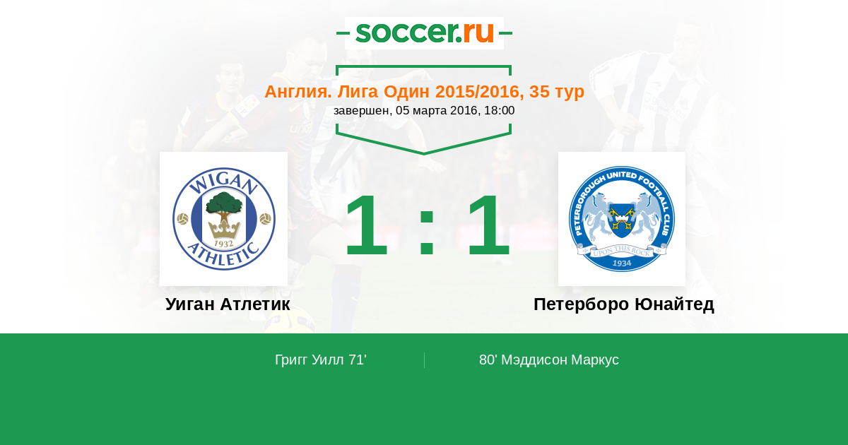 Протокол матча Уиган Атлетик против Петерборо Юнайтед
