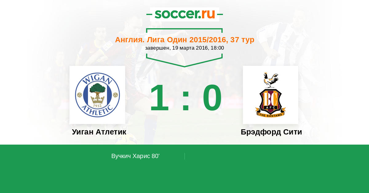 Протокол матча Уиган Атлетик против Брэдфорд Сити