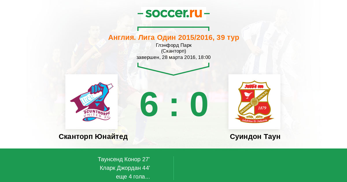Протокол матча Сканторп Юнайтед против Суиндон Таун