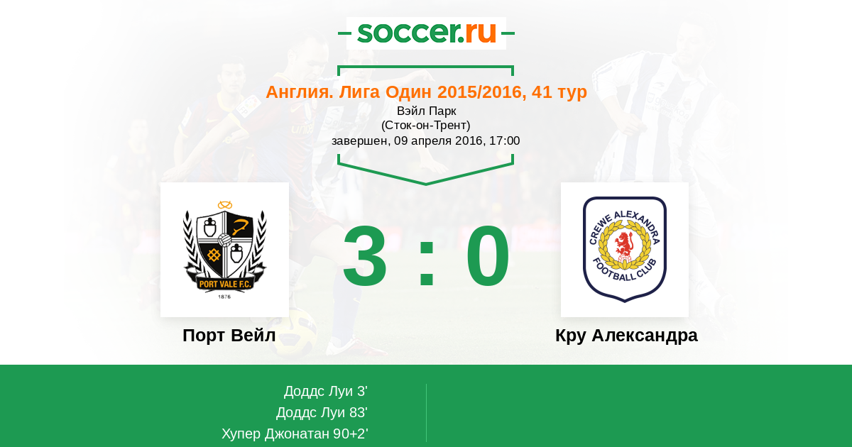 Протокол матча Порт Вейл против Кру Александра