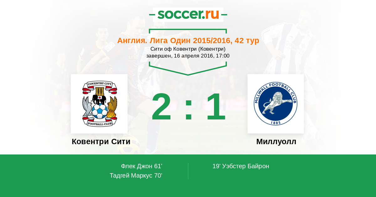 Протокол матча Ковентри Сити против Миллуолл