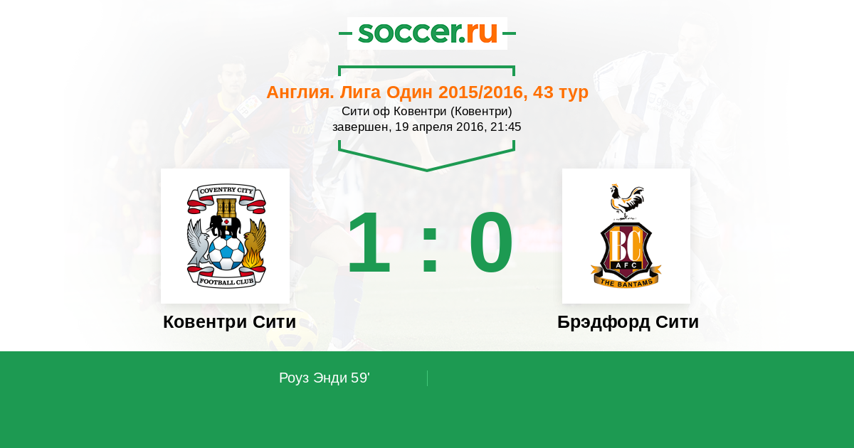 Протокол матча Ковентри Сити против Брэдфорд Сити