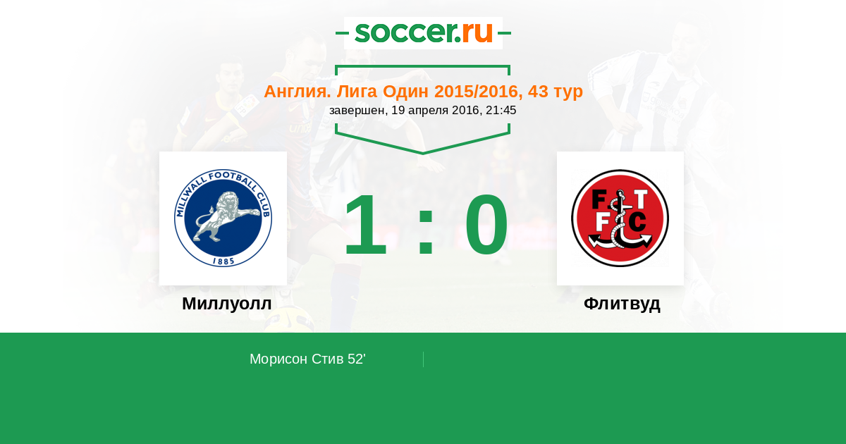 Протокол матча Миллуолл против Флитвуд