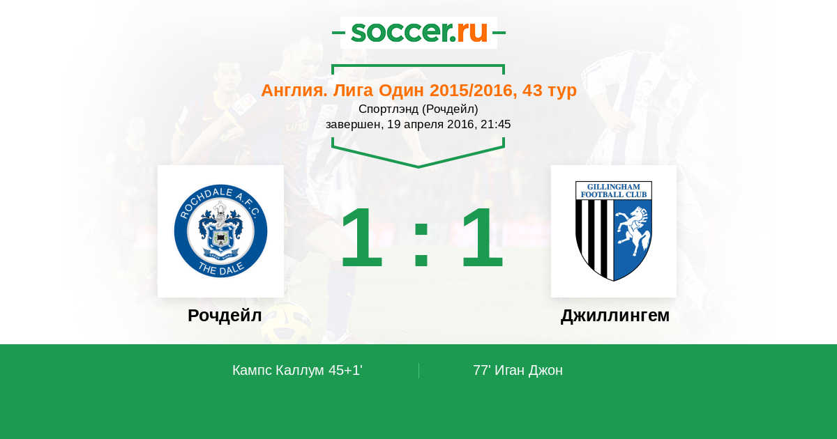 Протокол матча Рочдейл против Джиллингем
