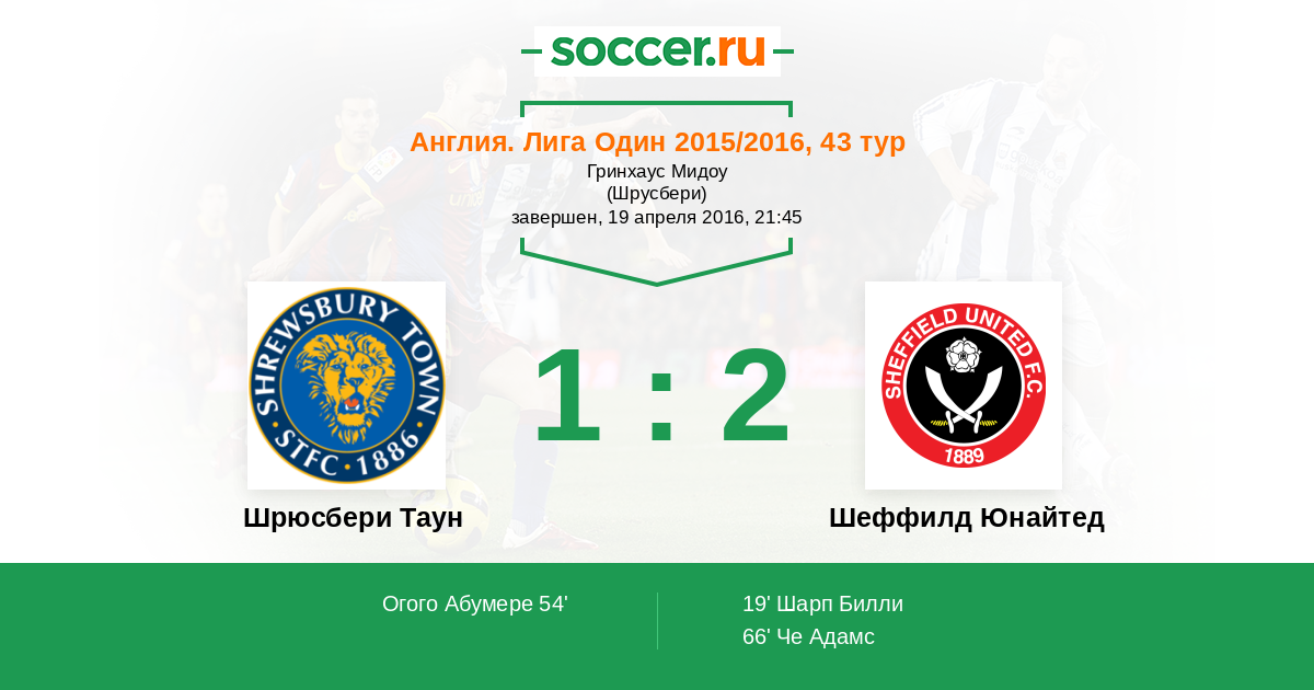 Протокол матча Шрюсбери Таун против Шеффилд Юнайтед