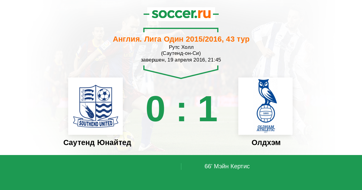 Протокол матча Саутенд Юнайтед против Олдхэм