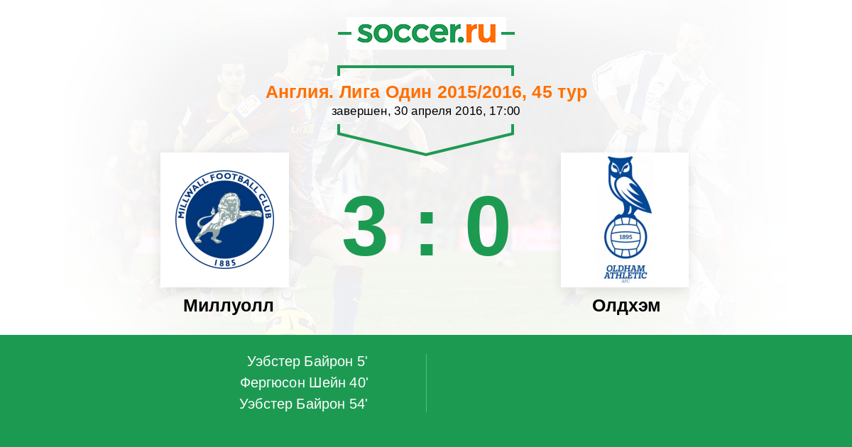 54' (3:0) Уэбстер Байрон (17) (Морисон Стив (20))