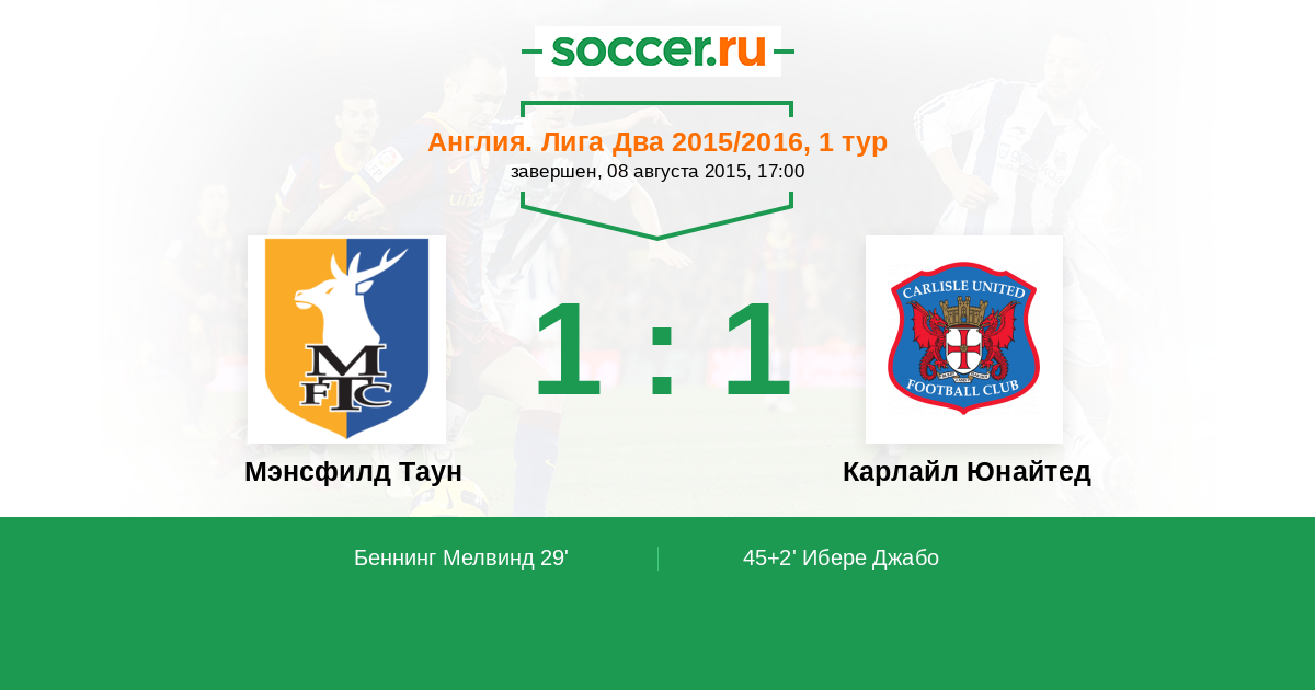 Протокол матча Мэнсфилд Таун против Карлайл Юнайтед