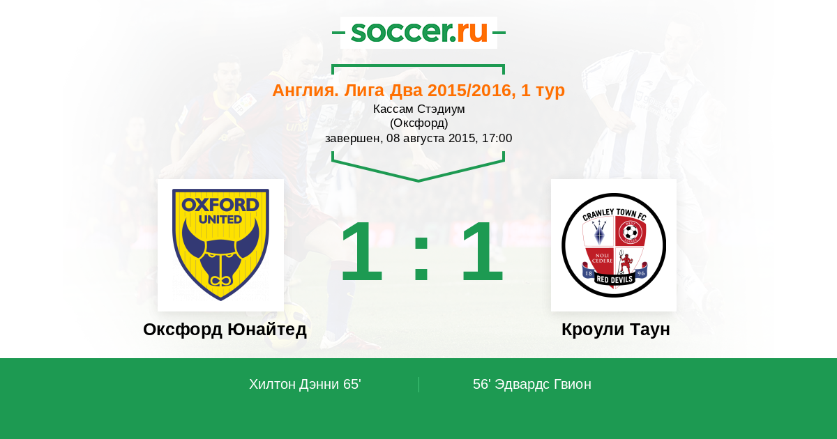 Протокол матча Оксфорд Юнайтед против Кроули Таун
