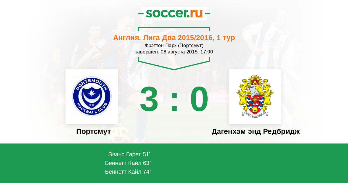 Протокол матча Портсмут против Дагенхэм энд Редбридж