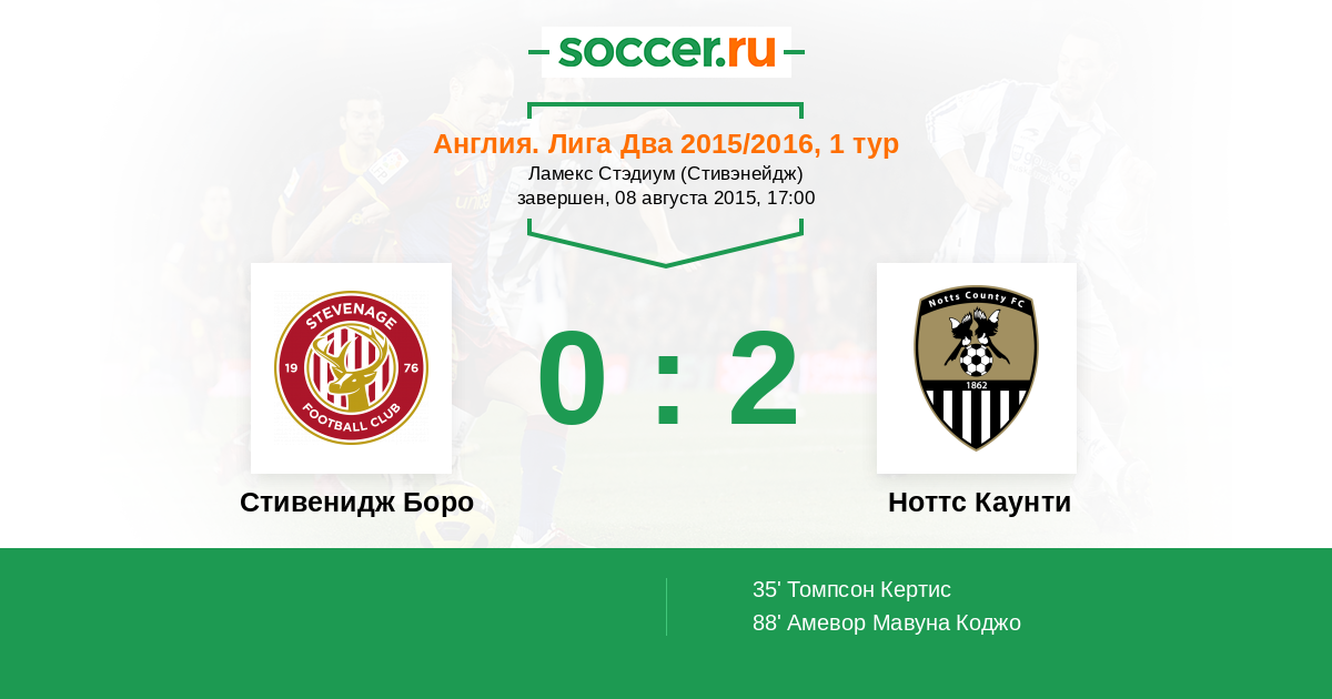 Протокол матча Стивенидж Боро против Ноттс Каунти