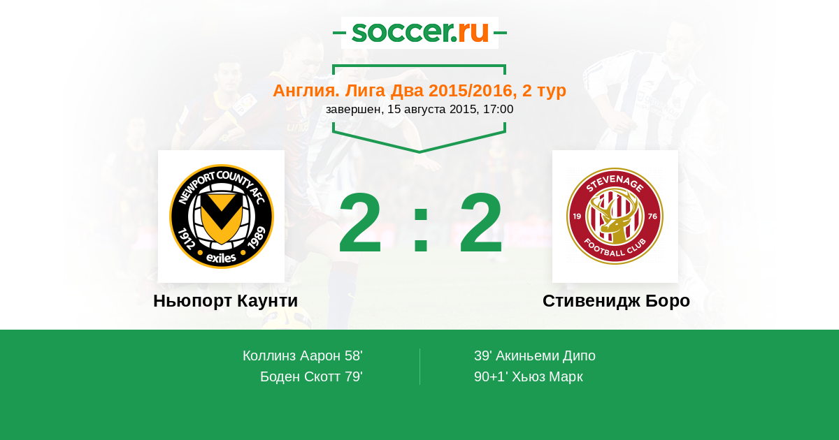 Протокол матча Ньюпорт Каунти против Стивенидж Боро