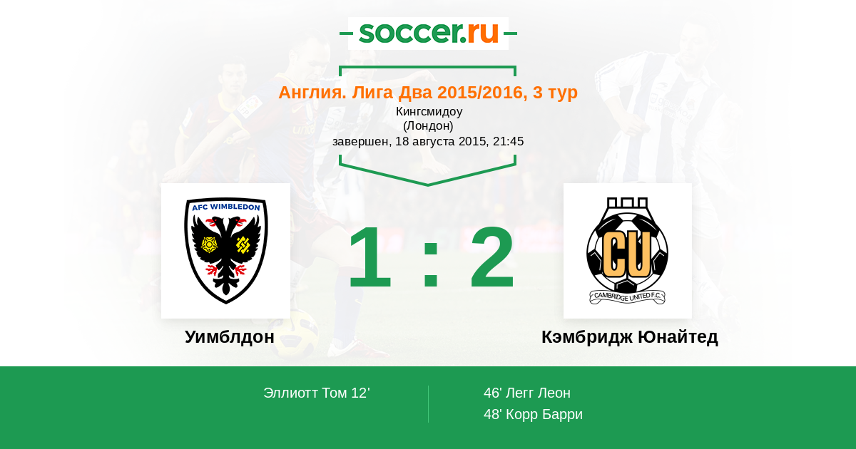 Протокол матча Уимблдон против Кэмбридж Юнайтед