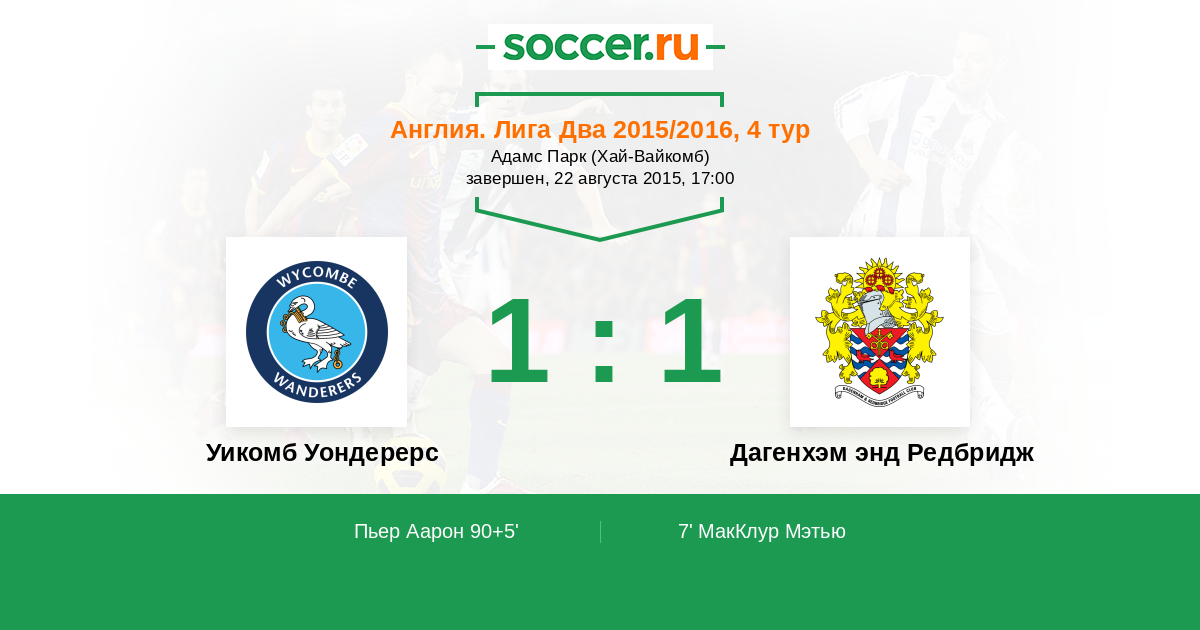 Протокол матча Уикомб Уондерерс против Дагенхэм энд Редбридж