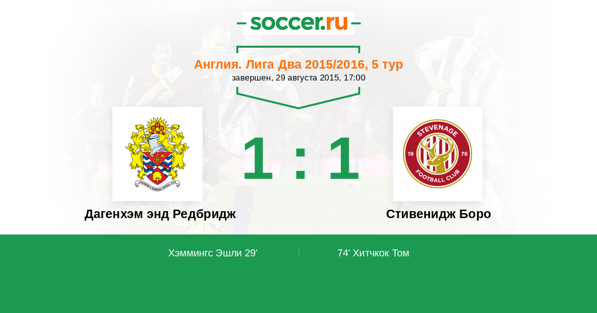 Протокол матча Дагенхэм энд Редбридж против Стивенидж Боро