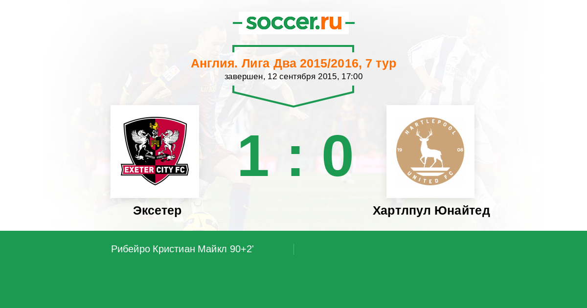 Протокол матча Эксетер против Хартлпул Юнайтед