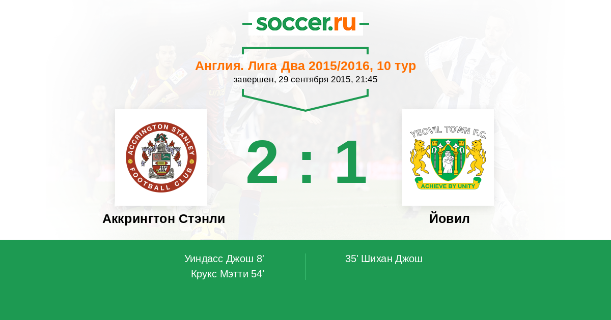 8' (1:0) Уиндасс Джош (8) (Ки Билли (29))
