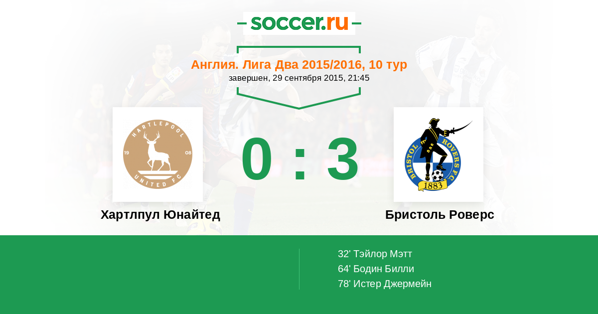 Протокол матча Хартлпул Юнайтед против Бристоль Роверс
